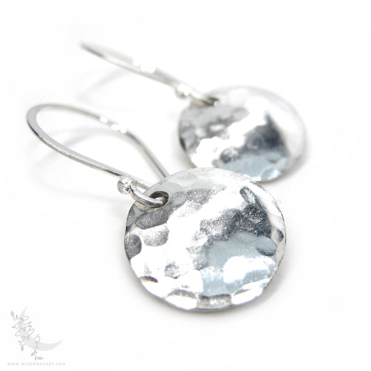 Hand Hammered Sterling Silver Earrings · Tiny Minimalist Upcycled Silver Coin Dangle Earrings