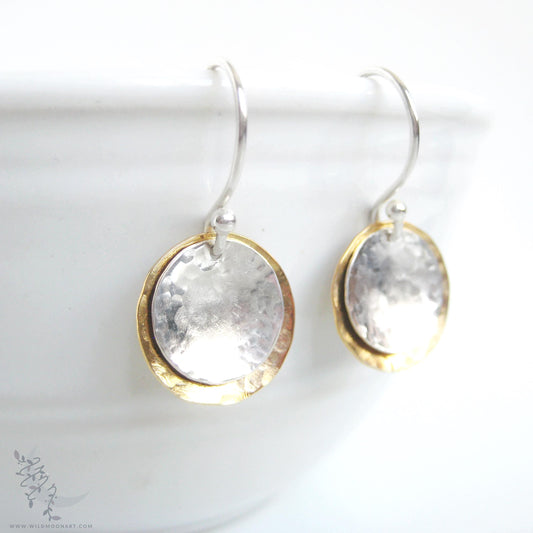 Gold & Sterling Silver Earrings · Mixed Metal Hand Hammered 14k Gold Filled Coin Dangle Earrings