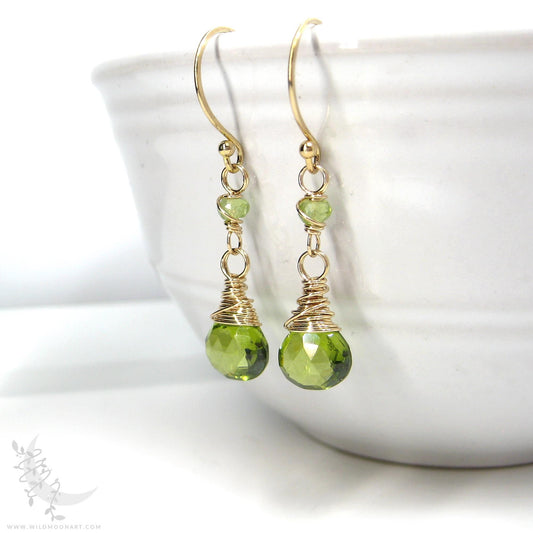 Peridot Earrings · 14k Gold Filled Peridot Dangle Earrings
