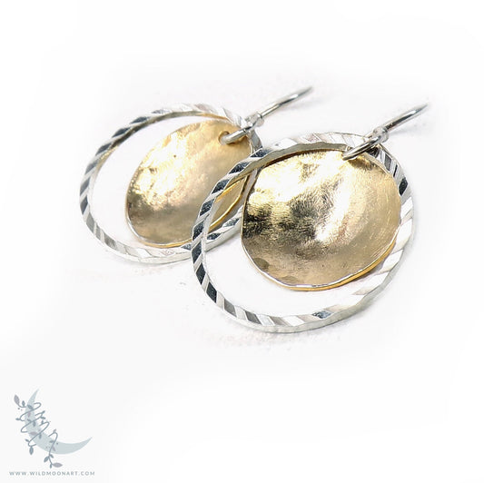 Silver & Gold Earrings · Mixed Metal Hammered 14k Gold Filled & Sterling Silver Dangle Earrings