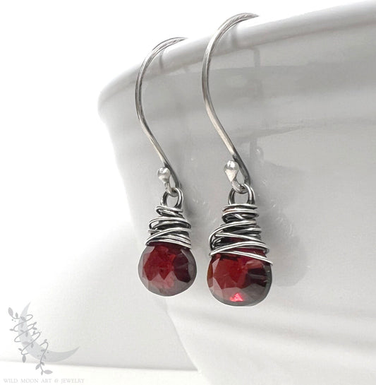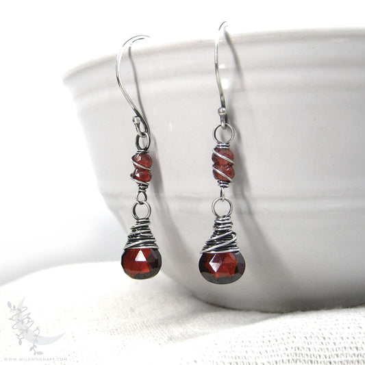Dainty Garnet Earrings · Sterling Silver Dangle Earrings