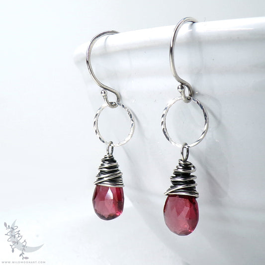 Garnet Earrings · Hammered Sterling Silver Dangle Earrings