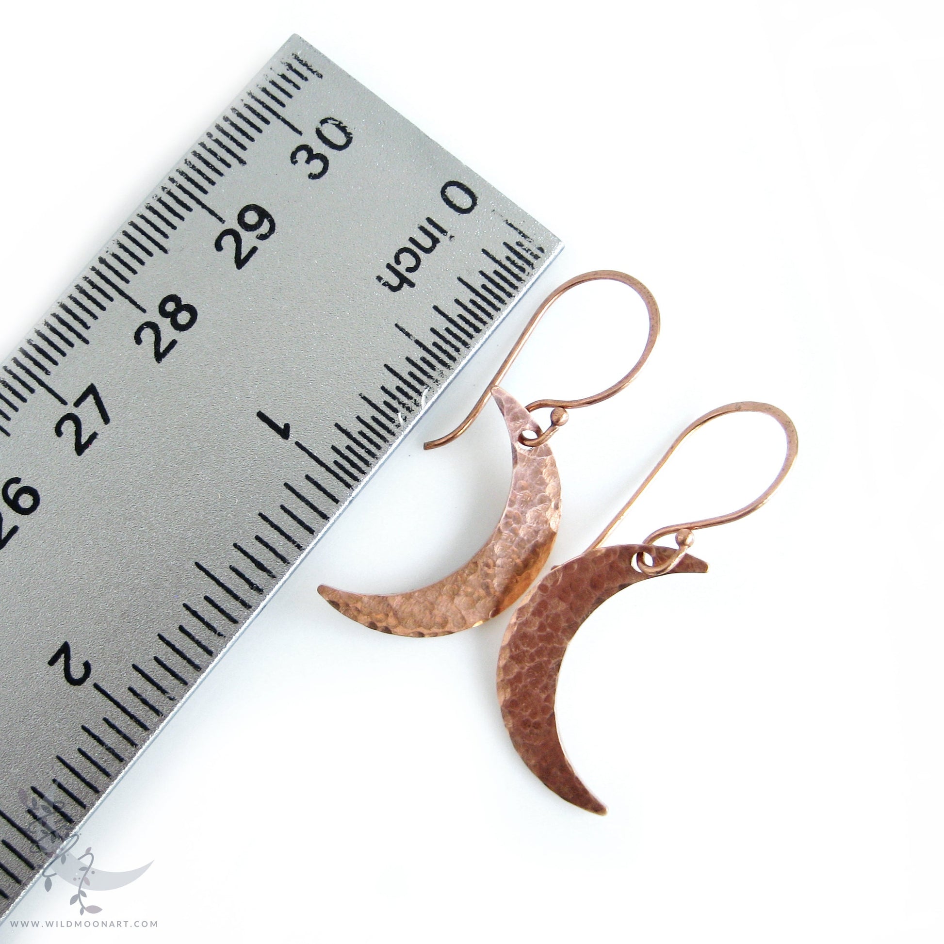 Copper Moon Earrings · Handmade Hammered Crescent Moon Dangle Earrings
