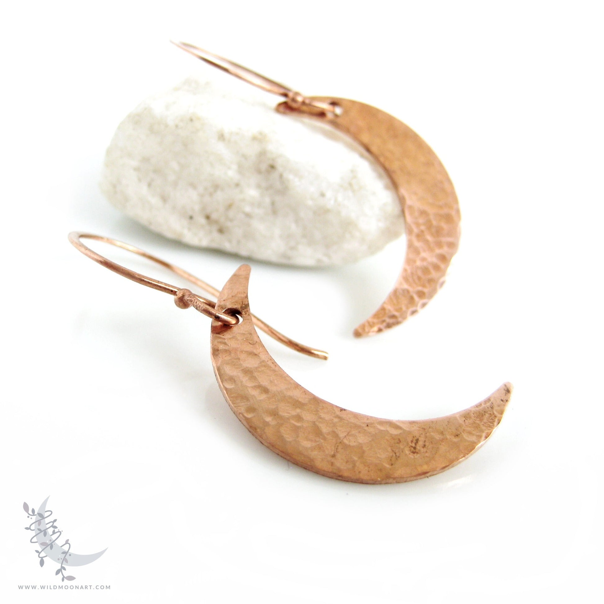 Copper Crescent Moon Earrings · Handmade Hammered Copper Earrings ·
