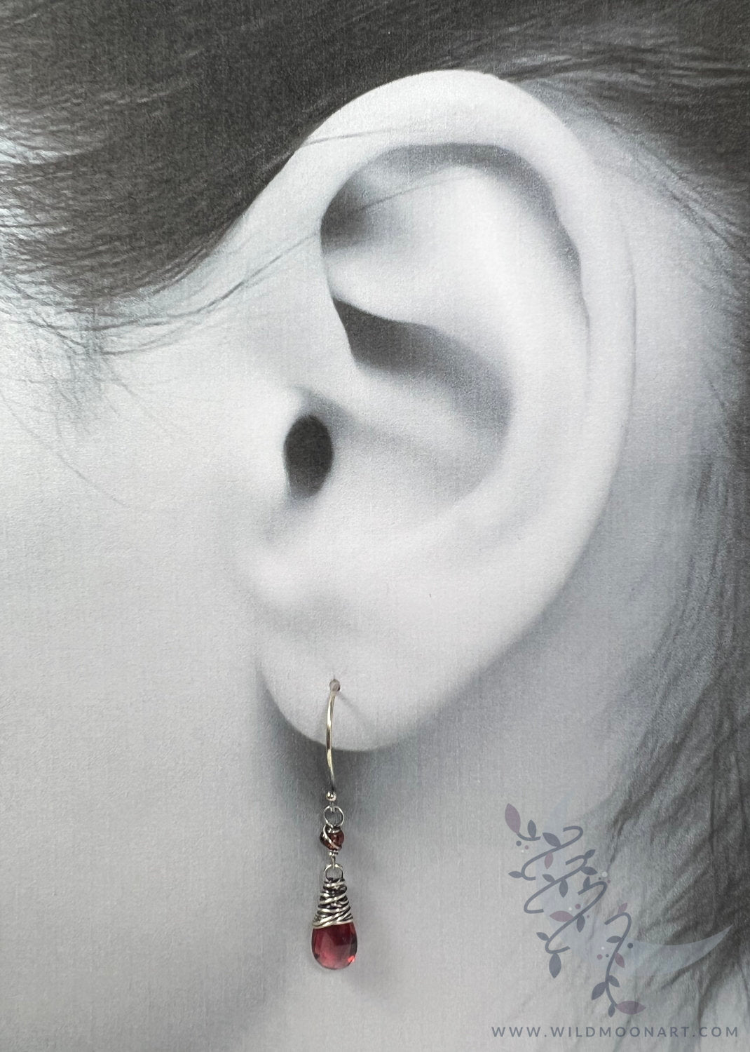 Garnet Sterling Silver Dangle Earrings · Petite Gemstone Earrings