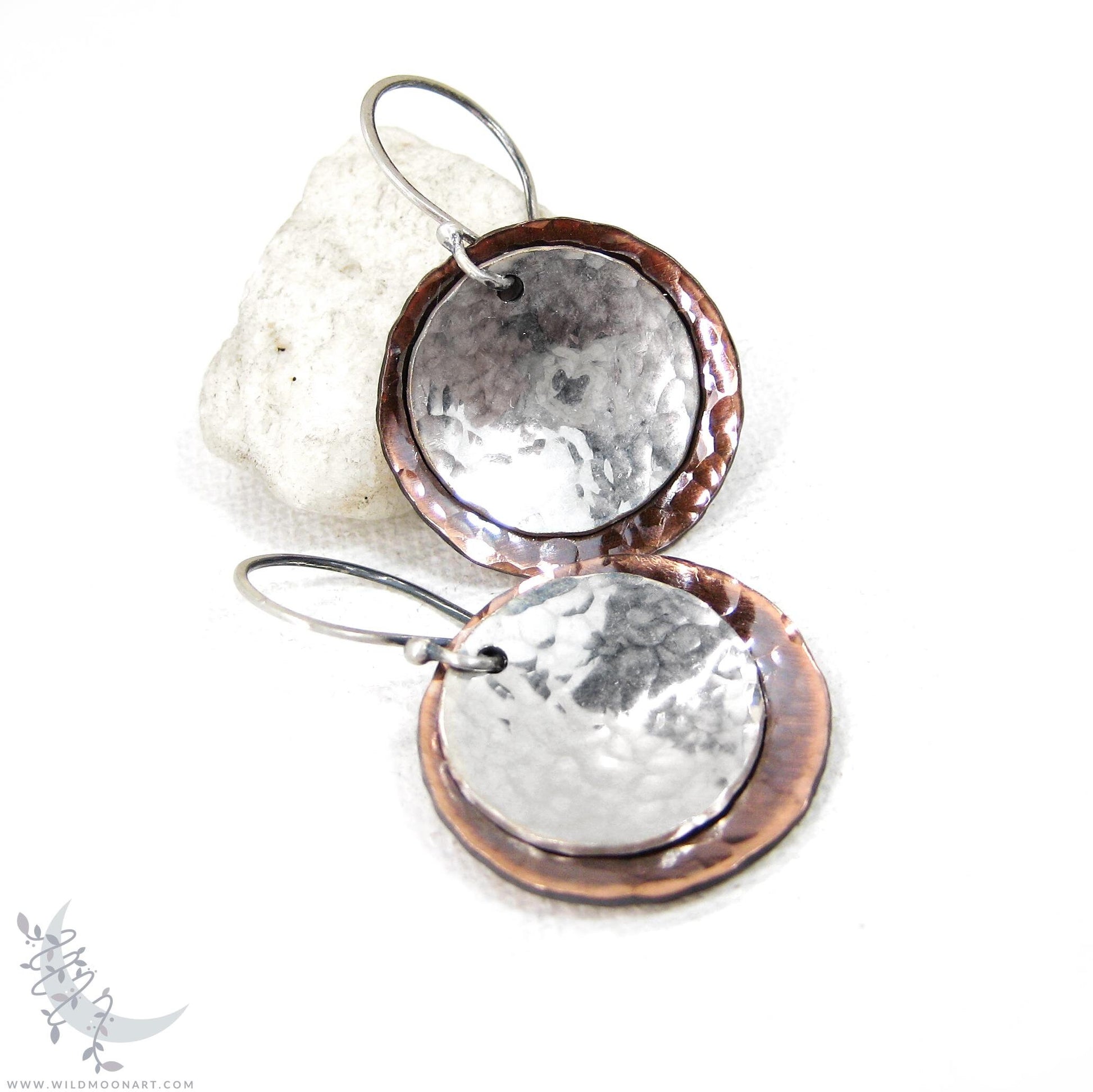 Mixed Metal Copper & Sterling Silver Earrings · Antiqued & Hand Hammered (m)