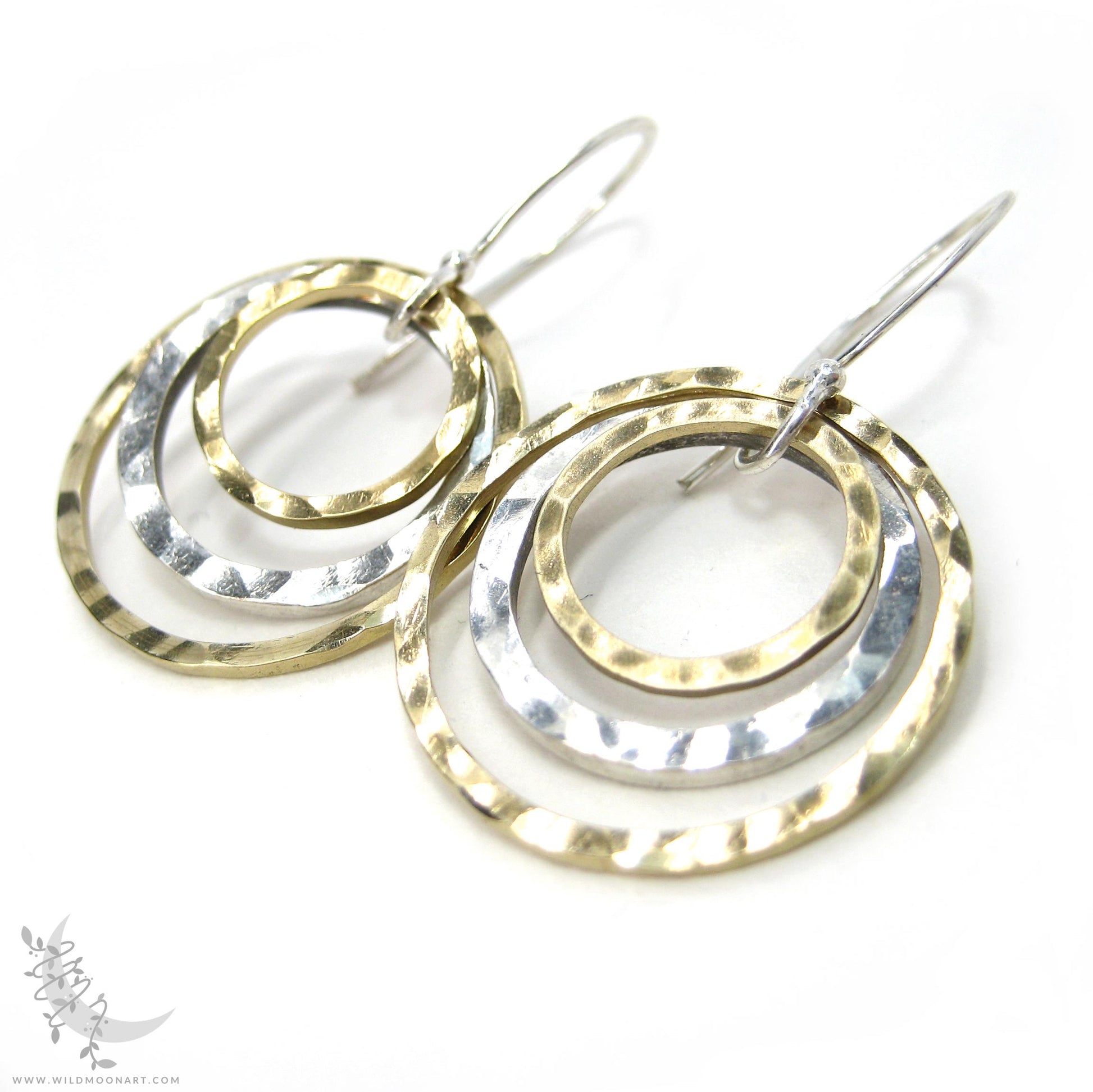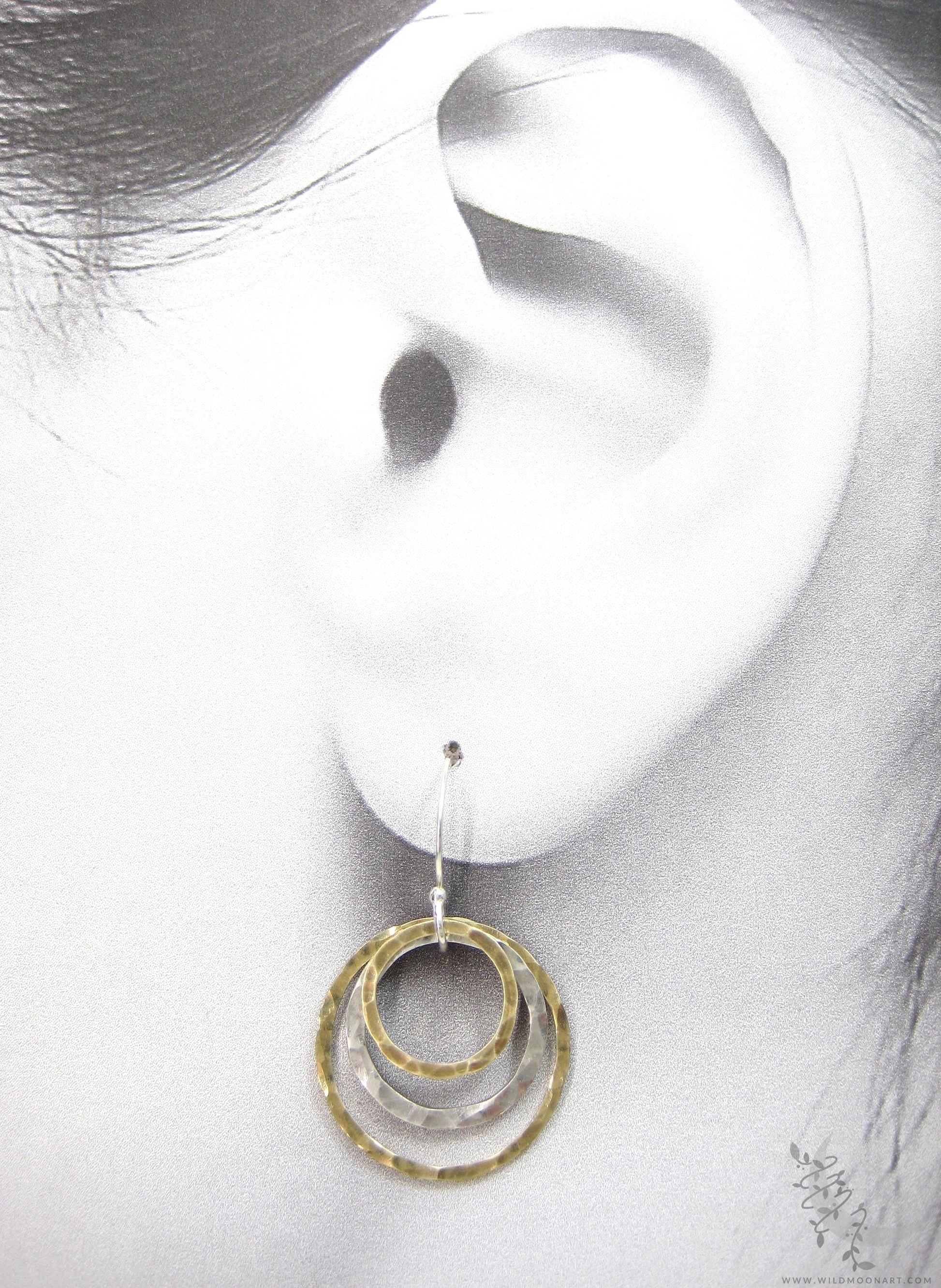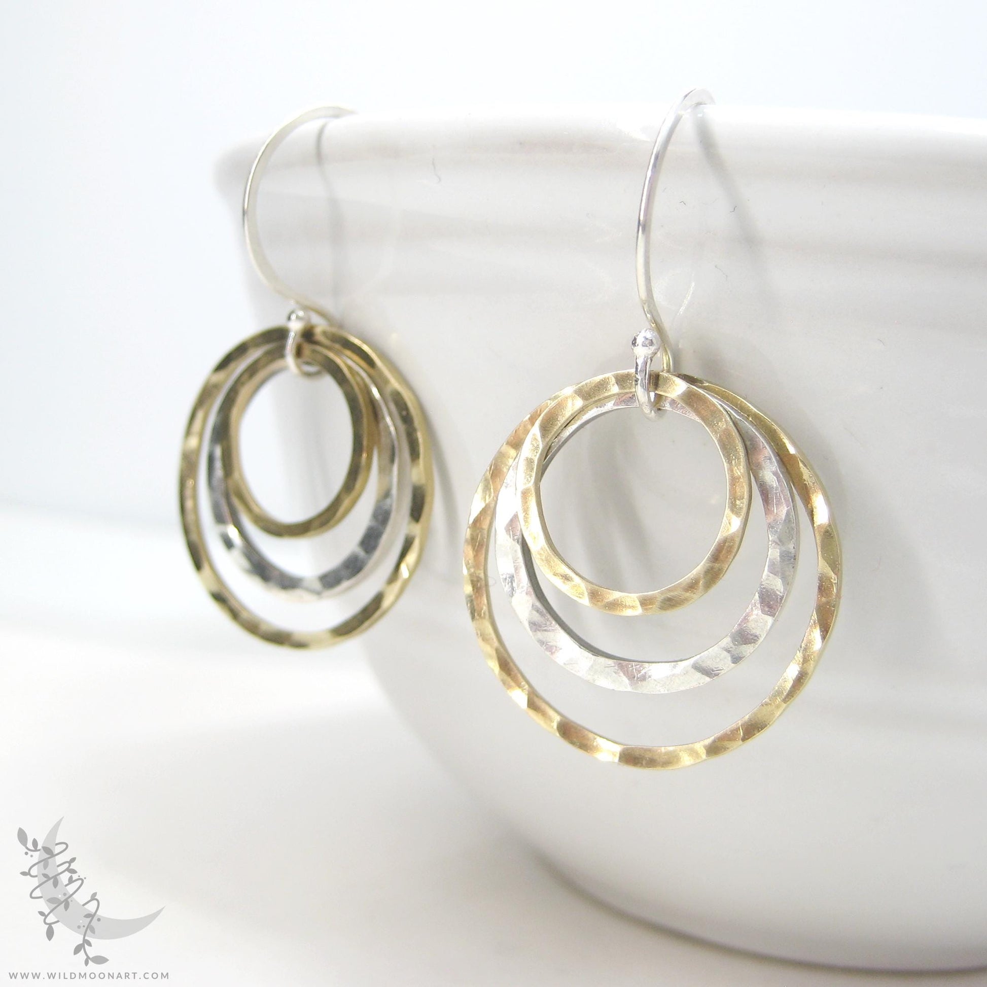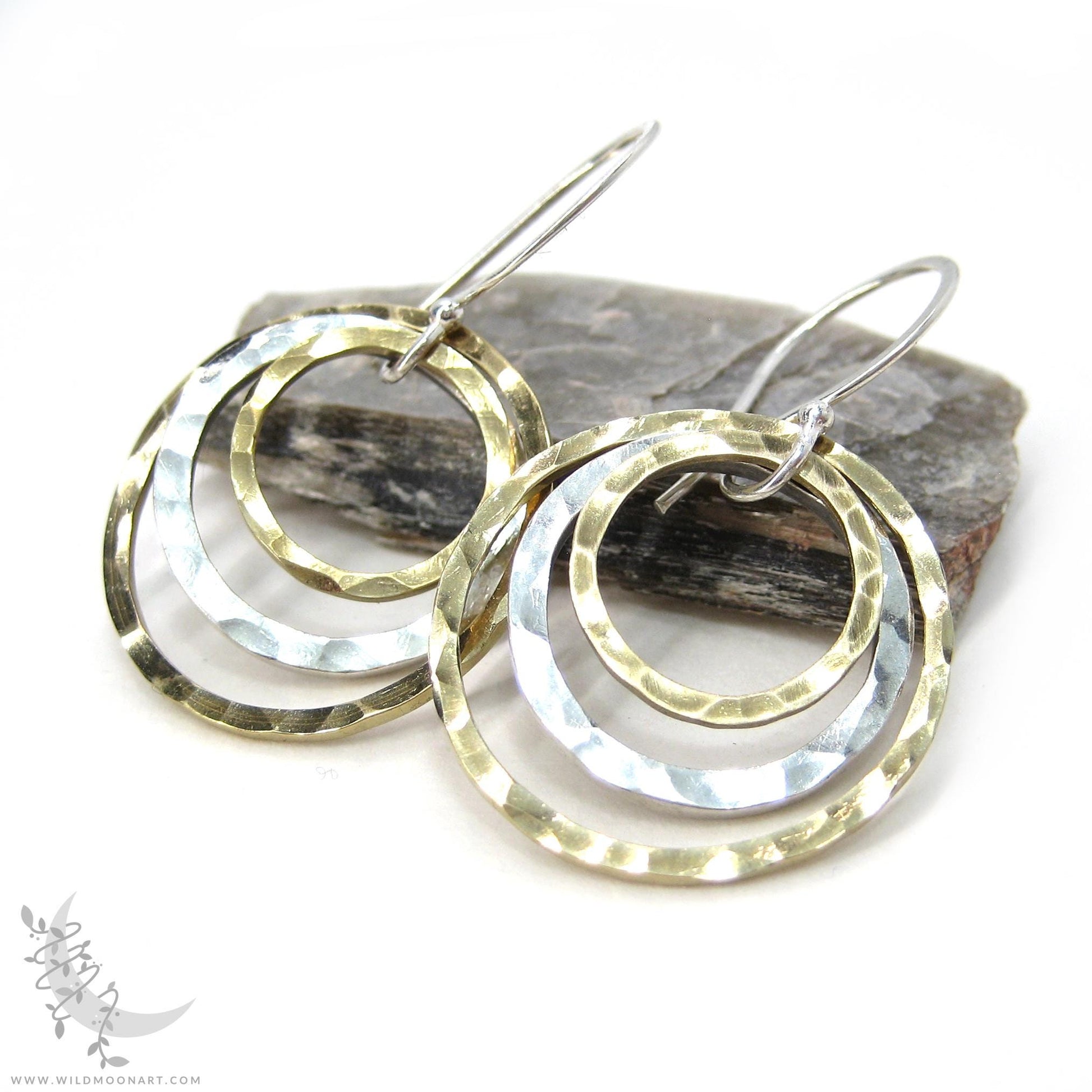 Mixed Metal Brass & Sterling Silver Earrings · Hammered Circle Dangle Earrings