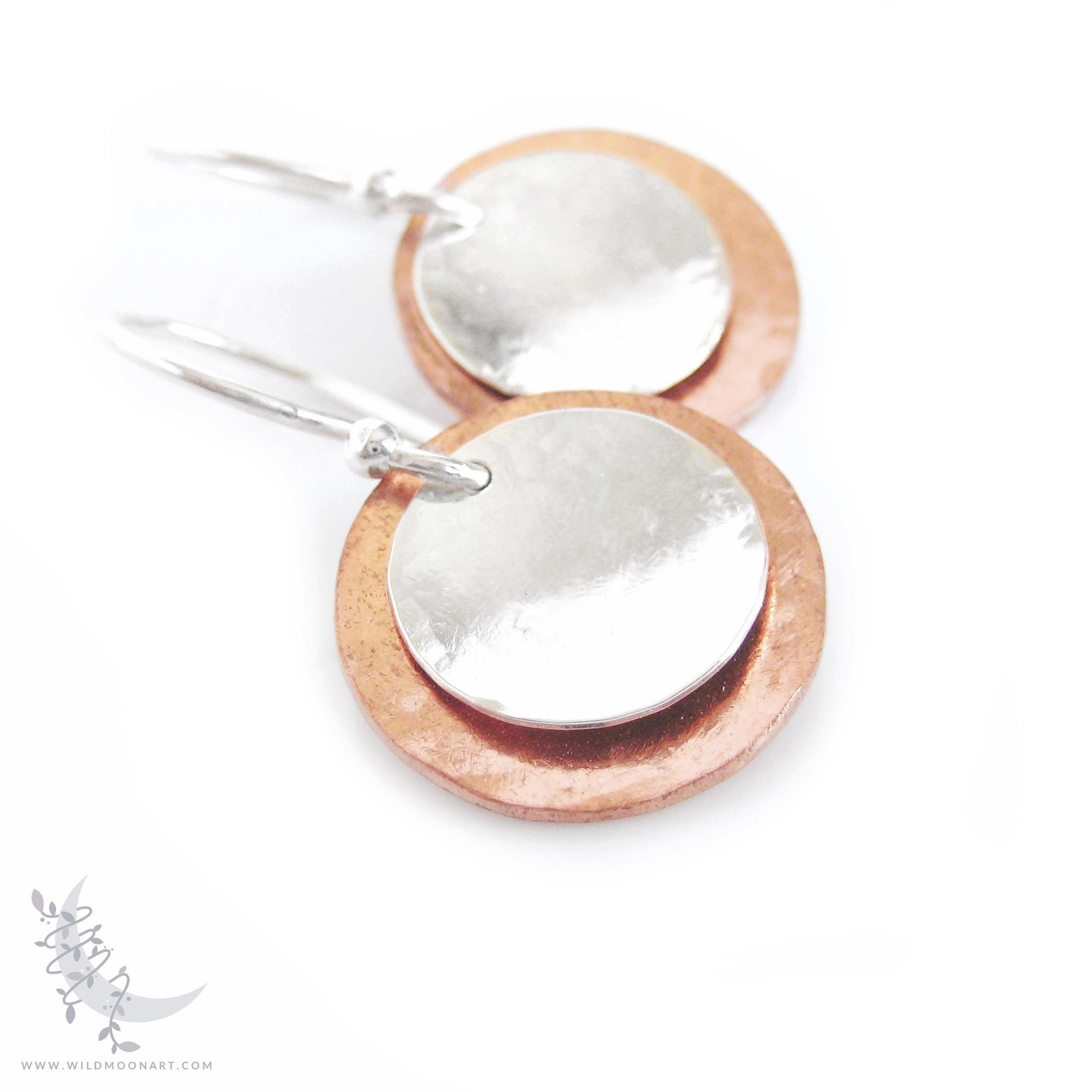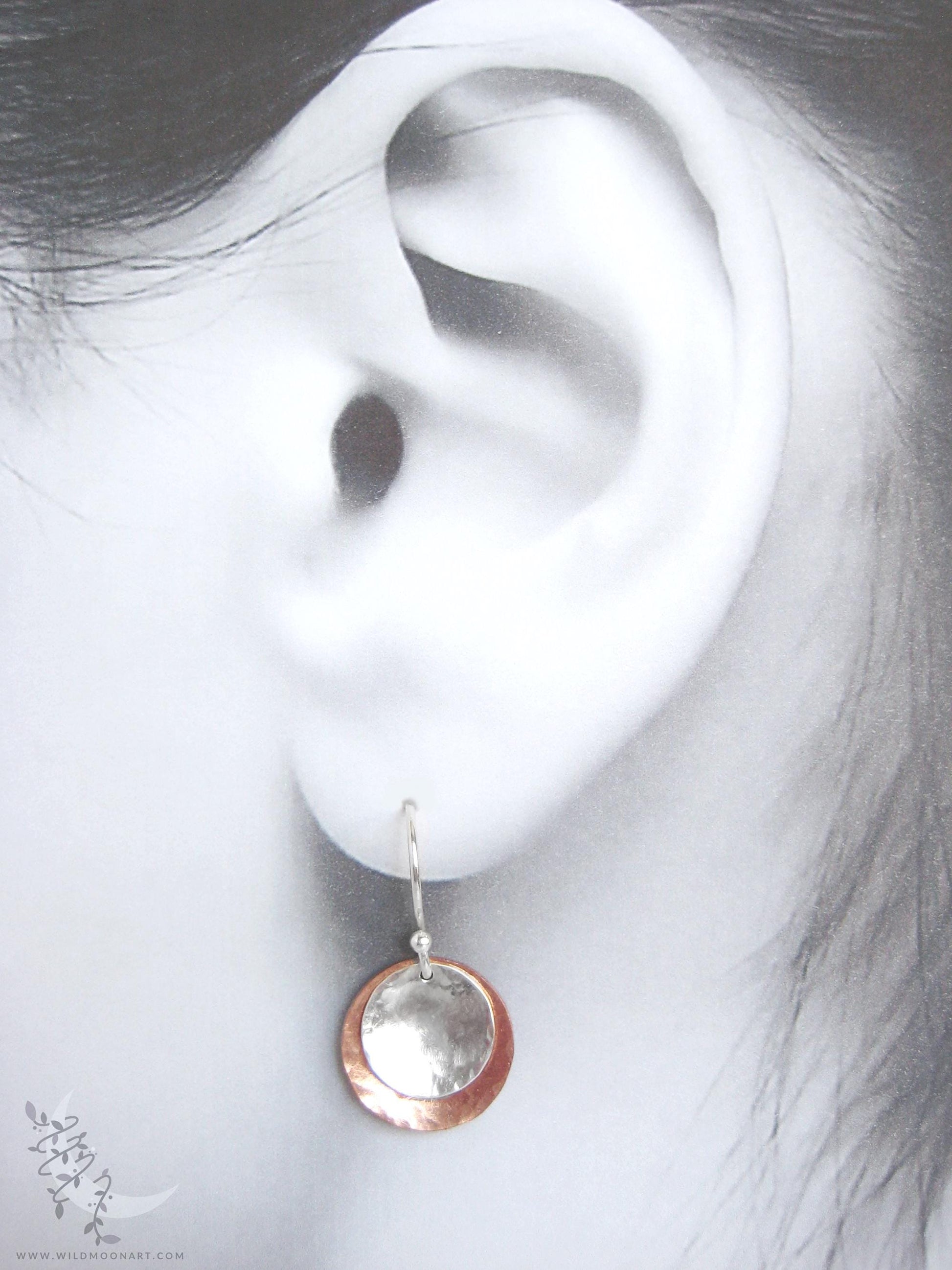 Mixed Metal Copper & Sterling Silver Earrings · Hand Hammered Coin Dangle Earrings (s)