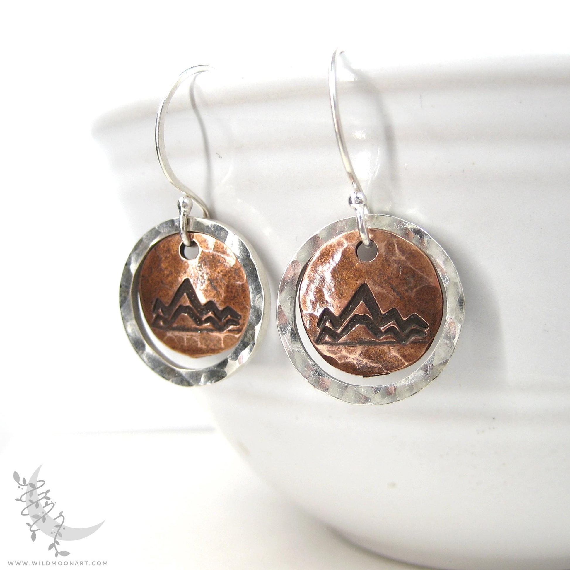 Mountain Earrings · Mixed Metal Sterling Silver & Copper Hammered Dangle Earrings