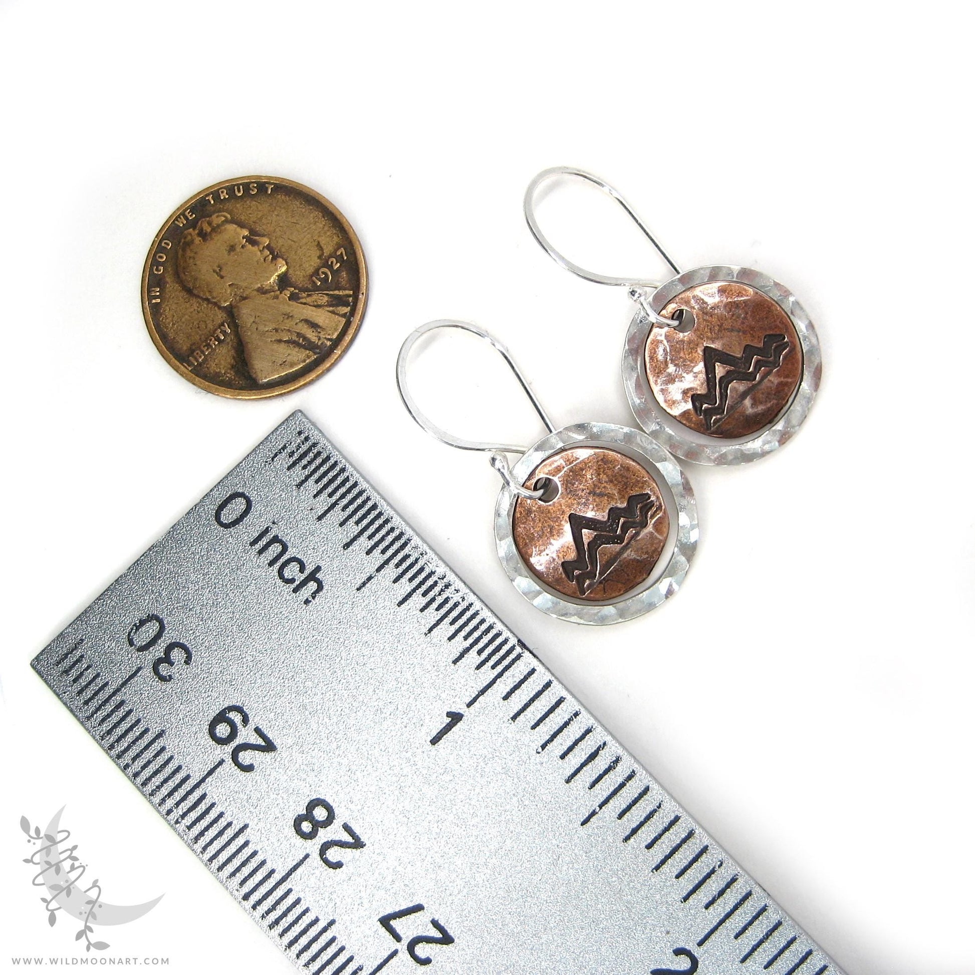 Petite Hand Hammered Mixed Metal Sterling Silver & Copper Mountain Earrings ·