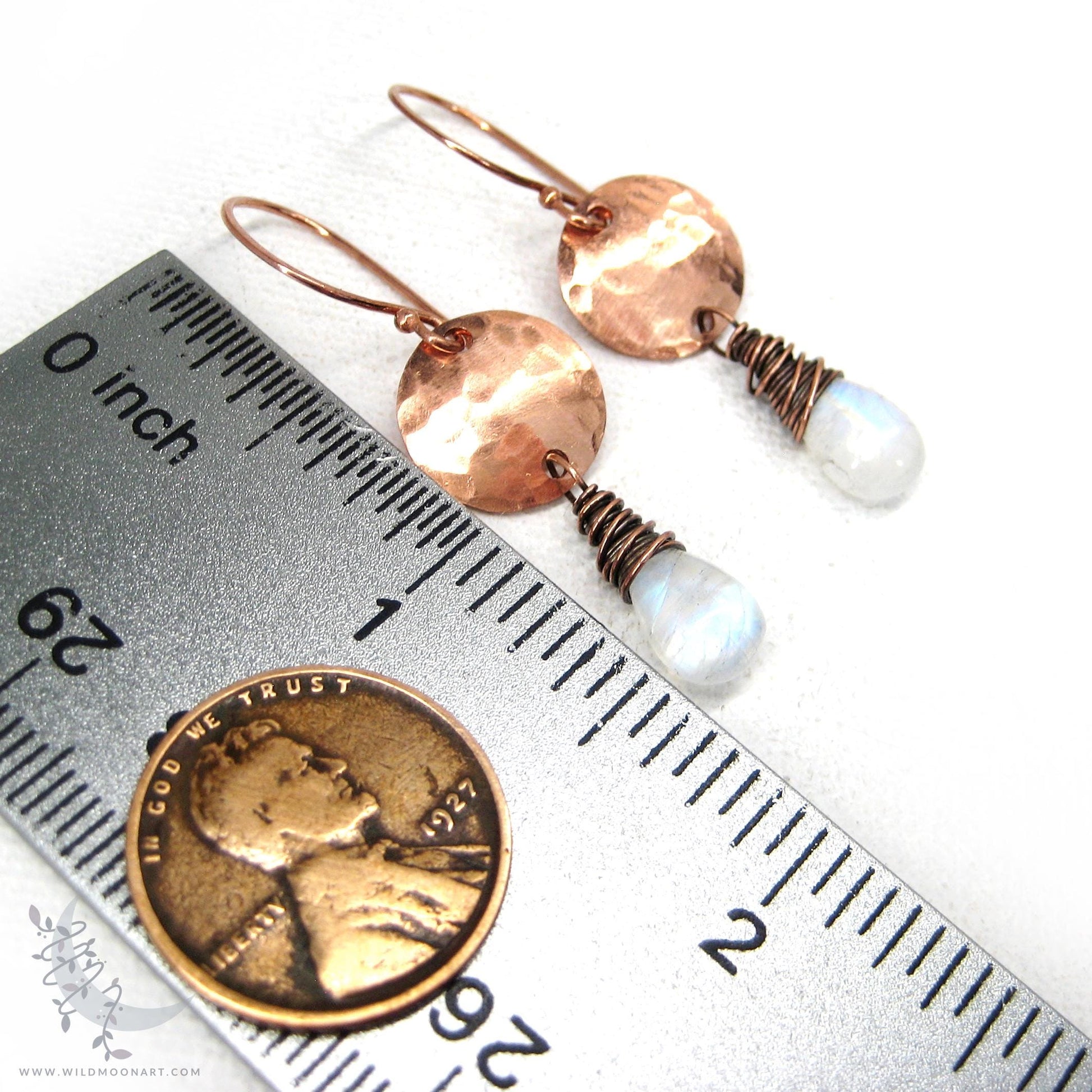 Moonstone Earrings · Hammered Copper Dangle Earrings