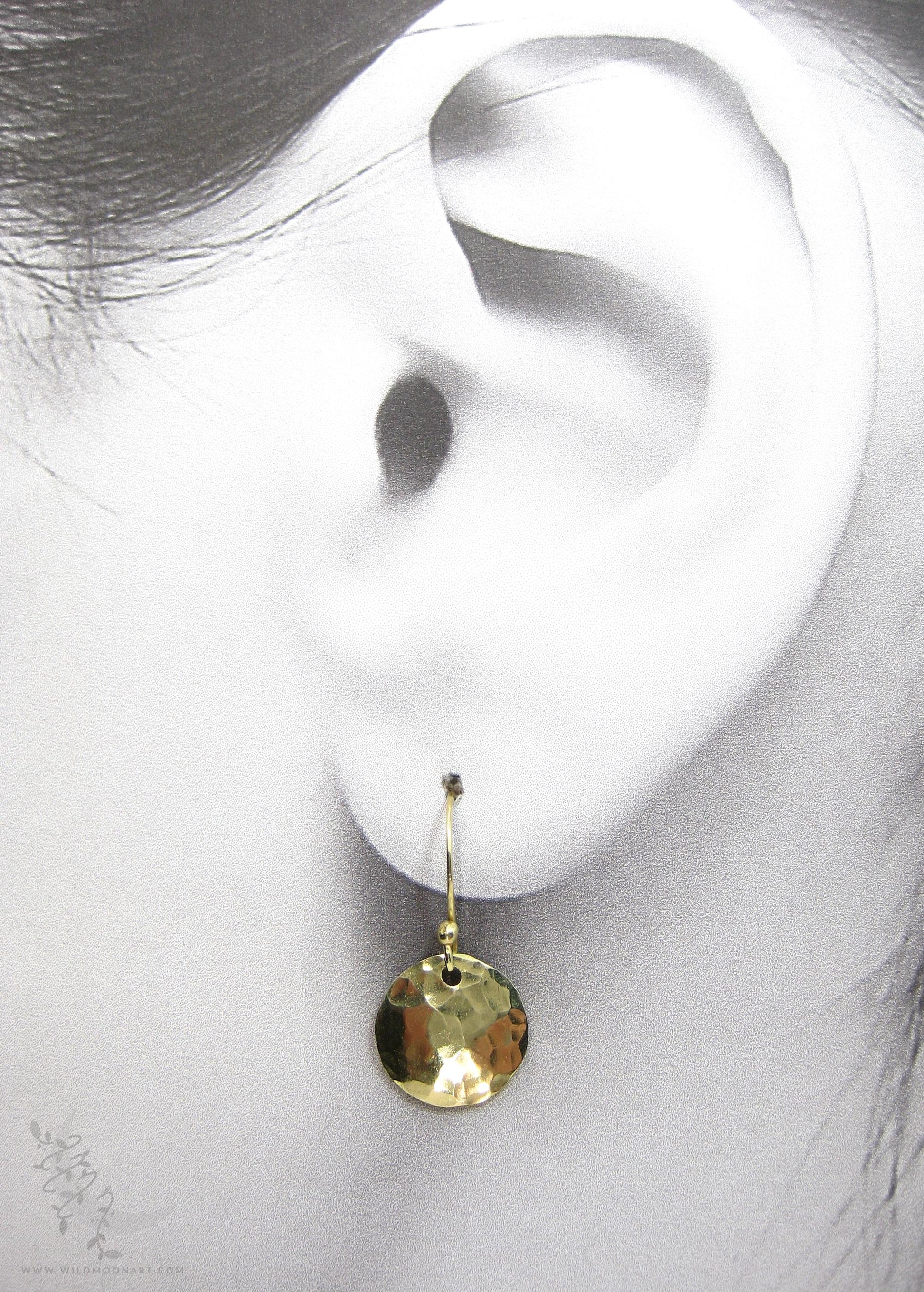 Hand Hammered Brass Earrings · Tiny Minimalist Coin Earrings